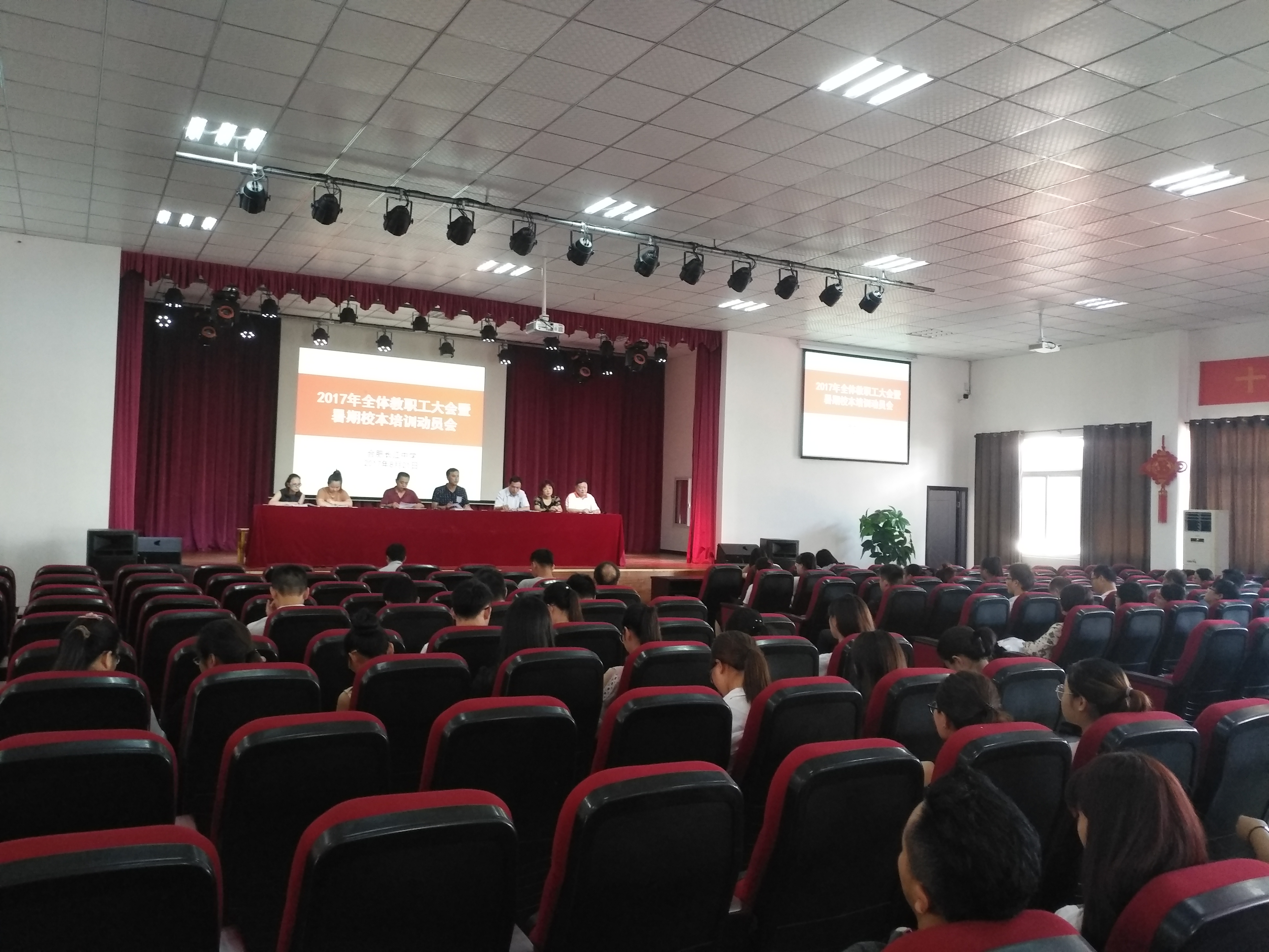 我校下学期新增了高三年级,同时扩大了高考复读班的规模,随着建制的扩充,新聘教师较多,结合上学期学校管理实际,为增强师资队伍素能,强化教育教学管理,提升办学品位,为迎接新学期的到来,校长室于8月21日至8月25日组织举办了为期5天的2017年暑期校本培训。