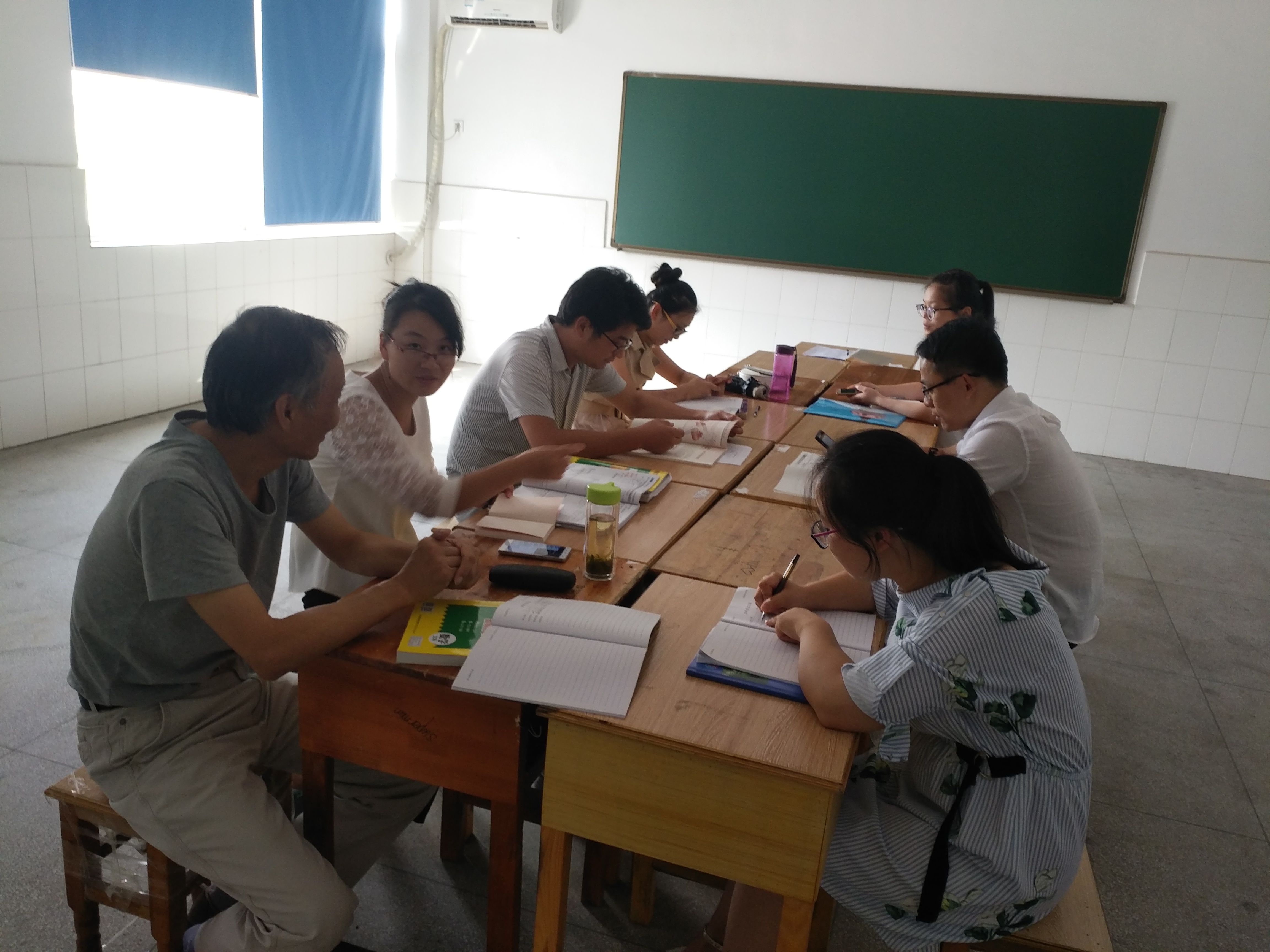 我们分学科、分地点,以教研组为单位进行了三个半天的不同层面的集体研课。8月21日下午和8月22日下午,各教研组分别对骨干教师与新上岗教师的展示课推荐了定额的人选,并确定课题进行磨课;8月22日上午专门对“智慧课堂”展示课推荐人选并确定课题进行磨课。