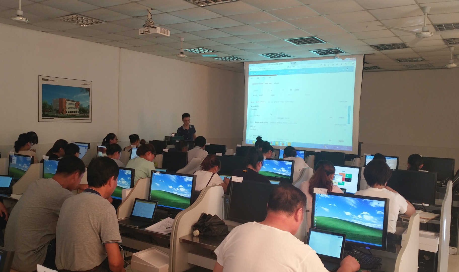 8月22日,我校微机房魅力空前,现有教师分两大组于上午和下午依次分别在这里接受OKAY智慧教育研究院的“智慧教育”软件应用技术培训。